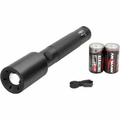 La Future T300F est une lampe de poche à usage professionnel pour la police, les services de sécurité ou les athlètes de plein air. Il tient bien dans la main, dispose d’une surface de préhension à distance et d’un interrupteur marche / arrêt caoutchouté, ce qui permet un fonctionnement même avec des gants ou dans des conditions humides. Il est protégé IP54 contre les éclaboussures d’eau et de poussière. En faisant pivoter la tête de la lampe, la mise au point peut être ajustée de la mise au point ponctuelle au grand angle à la vitesse de l’éclair. Il est alimenté par 3 piles Baby C LR14.