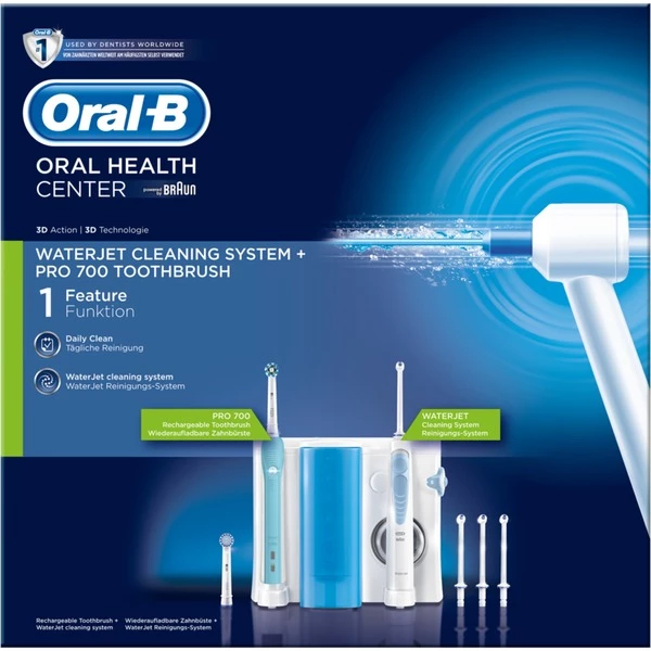 La brosse à dents électrique Oral-B PRO 700 avec ses poils placés avec précision nettoie efficacement plus de plaque qu’une brosse à dents normale, de sorte que rien ne reste derrière, à part des dents parfaitement propres. Ensuite, la douche buccale peut être utilisée pour nettoyer les dents en profondeur. Elle stimule les gencives et améliore ainsi la circulation sanguine. Cela aide à prévenir les maladies des gencives et donne une sensation de fraîcheur et de propreté. Par exemple, il propose des soins dentaires professionnels pour un nettoyage supérieur, des soins des gencives, des dents plus blanches et une haleine fraîche.