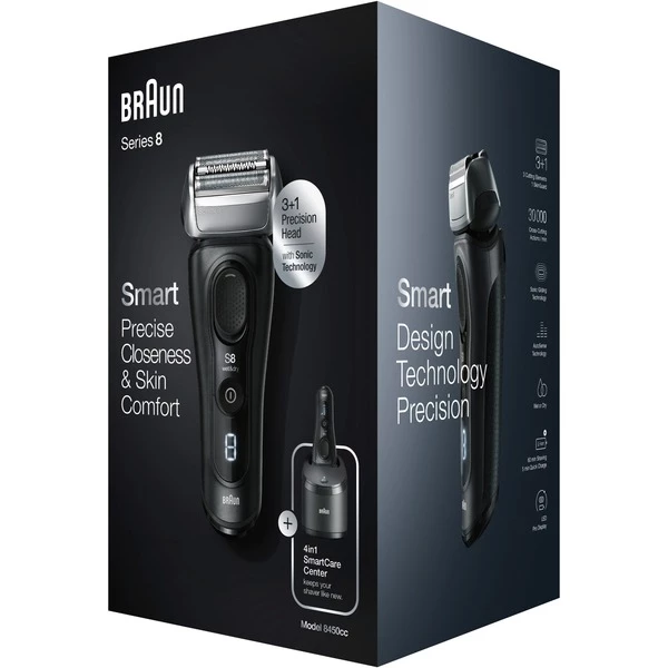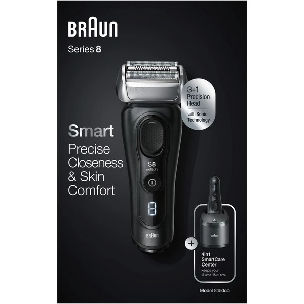 Le rasoir Série 8 – 8450cc de Braun fonctionne avec la technologie Sonic, qui utilise 10 000 microvibrations pour capturer plus de cheveux avec une glisse douce sur la peau. De plus, le moteur AutoSensing détecte la densité de croissance de la barbe et s’adapte automatiquement. Quatre éléments de rasoir capturent plus de poils à chaque bouffée pour un rasage lisse et confortable sans compromis. La tête de tige à 40 degrés maîtrise même les contours les plus difficiles: avec des éléments de rasage mobiles indépendamment sur une tête pivotante avec MicroMotion et MacroMotion. La tondeuse de précision intégrée et respectueuse de la peau peut être poussée à l’arrière du rasoir pour un contour facile et plus précis des brûlures latérales. Avec la série 8, vous pouvez vous raser à sec ou utiliser de l’eau, de la mousse ou du gel – pour une meilleure glisse et une sensation de peau plus lisse. Grâce à la poignée caoutchoutée et structurée, le rasoir peut être manipulé en toute sécurité et confortablement, même lorsqu’il est mouillé. La livraison comprend également la station de nettoyage 4-en-1 (SmartCare Center) avec sélection intelligente du programme, qui sélectionne automatiquement le programme de nettoyage optimal: Basé sur l’alcool, il élimine 99,9% de tous les germes et bactéries en appuyant sur un bouton. Il charge et entretient également le rasoir de manière entièrement automatique.