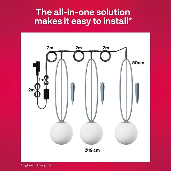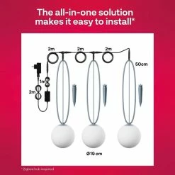 Avec l’Outdoor Smart Globe Light Colour 3-Pack d’INNR, le jardin ou le balcon peut être éclairé avec goût et intelligence. Cet ensemble se compose de trois luminaires et d’une large gamme d’accessoires avec lesquels les luminaires peuvent être suspendus ou installés. Les luminaires génèrent un flux lumineux allant jusqu’à 370 lumens chacun, sont dimmables et, si nécessaire, brillent du blanc chaud au blanc froid ou à la couleur. Le contrôle se fait via une application ou la voix.