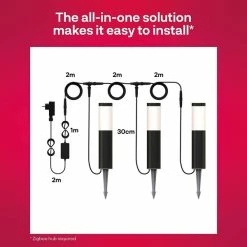 Les Outdoor Smart Pedestal Light Colour d’INNR sont des luminaires décoratifs pour le jardin ou sur la terrasse. Ils produisent une lumière blanche chaude à froide ou, si nécessaire, colorée avec jusqu’à 215 lumens et peuvent être contrôlés via une application ou une voix. Ce kit de démarrage contient trois lumières et les accessoires nécessaires pour les mettre directement en service.
