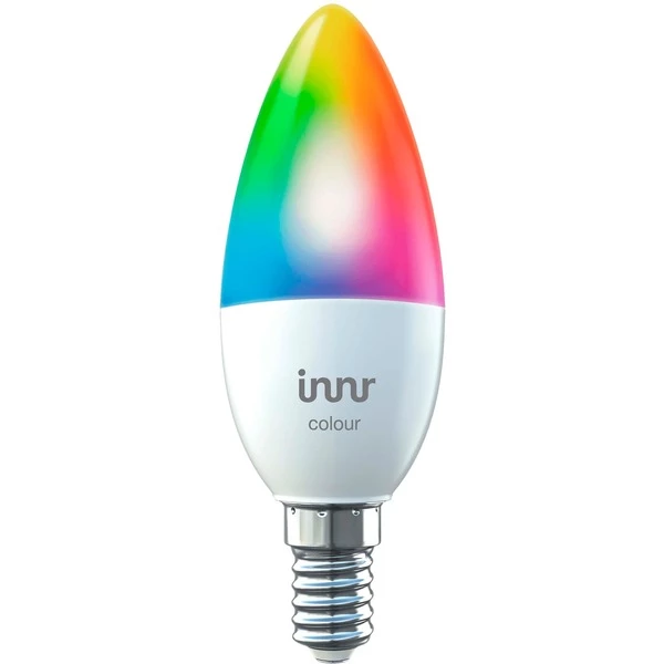 La Smart Candle Colour E14 d’INNR est une lampe LED contrôlable par protocole Zigbee pour la prise E14. Il peut également être contrôlé à distance via l’application INNR via iOS ou Android et génère un blanc chaud à blanc froid, sur demande également une lumière colorée avec jusqu’à 465 lumens, ce qui fait de chaque pièce une oasis de bien-être et permet une variété d’ajustements d’humeur.