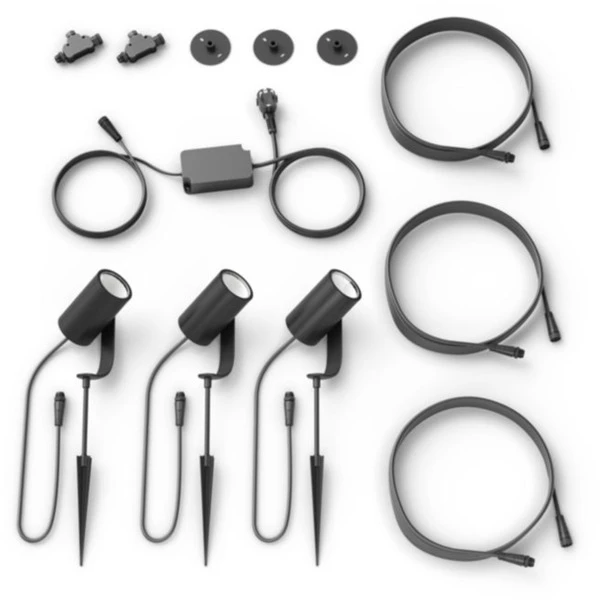 Branchez votre éclairage et illuminez vos extérieurs Ce pack de 3 spots Lily vous permet de mettre en valeur vos éléments de plein air préférés, de créer des ombres intéressantes, et bien plus encore. Il suffit de brancher les spots extérieurs connectés dans n'importe quelle prise murale standard à l'aide de l'alimentation basse tension incluse pour obtenir des millions de nuances de lumière blanche ou colorée dans votre jardin.