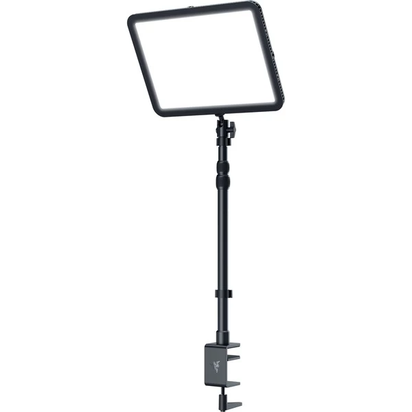 est une solution professionnelle pour la configuration du streaming. Que vous souhaitiez créer une certaine ambiance, obtenir un look parfait ou augmenter la flexibilité: Avec le contrôle sans fil via smartphone ou PC, l’éclairage est toujours sous contrôle. La température de couleur peut être ajustée dans une large gamme allant du chaud à l’équilibré en passant par le froid. En outre, il existe le contrôle des couleurs Chroma avec plus de 16,8 millions de couleurs, qui peut également répondre à des événements de streaming tels que des abonnements ou des dons. Le Key Light Chroma est compatible WLAN et Bluetooth et peut être entièrement contrôlé à distance via Razer Synapse. Il est fixé à la table avec un support de pince étroit et prend donc peu de place.