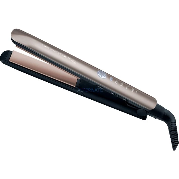 Le lisseur Remington Keratin Therapy Pro S8590 est doté de plaques de coiffage extra longues (110 mm), qui sont montées sur ressort pour assurer une pression uniforme sur les cheveux. Les plaques sont revêtues de céramique kératinique et équipées d’un capteur de protection thermique qui régule en permanence la température pour garantir un travail aussi doux que possible. Le régulateur de température vous permet de bien ajuster la température à vos propres cheveux, en choisissant parmi cinq températures différentes entre 160 et 230 °C. En seulement 15 secondes, le Keratin Therapy Pro S8590 est chauffé et prêt à être utilisé pour le lissage. Pour éviter de régler accidentellement la température pendant le lissage, un verrouillage des boutons est intégré. L’appareil s’éteint automatiquement après une heure s’il n’a pas été utilisé pendant cette période. Le verrouillage de transport permet d’éviter que l’appareil ne s’ouvre simplement pendant le transport.