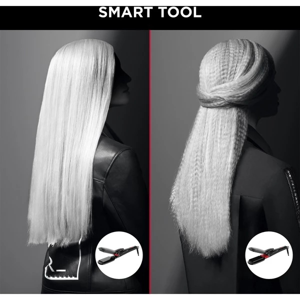 Le Rowenta x KARL LAGERFELD Infinite Looks Multistyler est conçu pour offrir des options de coiffure infinies pour toutes les humeurs – des coiffures en crêpe à la mode aux boucles irrésistibles. Le dispositif de coiffage convivial peut être utilisé comme lisseur de cheveux, fer à friser, fer à crêper et bien plus encore. Avec revêtement en céramique pour une brillance éclatante et un certain nombre de caractéristiques pratiques.