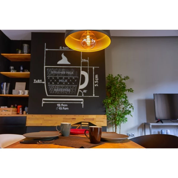 Look classique, intérieur moderne : la Vintage G125 est une lampe LED intelligente pour la base E27. Il s’intègre donc dans un douille standard et peut donc être facilement intégré dans des environnements d’éclairage existants. Cette lampe produit une lumière blanche chaude dimmable dans la gamme de 2700K et avec un flux lumineux allant jusqu’à 260 lumens. Il dispose d’une interface WLAN intégrée et peut être facilement contrôlé sans fil via une application. Il peut être contrôlé manuellement, mais des horaires peuvent également être créés pour certains moments de la journée ou certaines humeurs. Avec son corps ambré et sa spirale de filament, il attire l’attention dans n’importe quel intérieur.